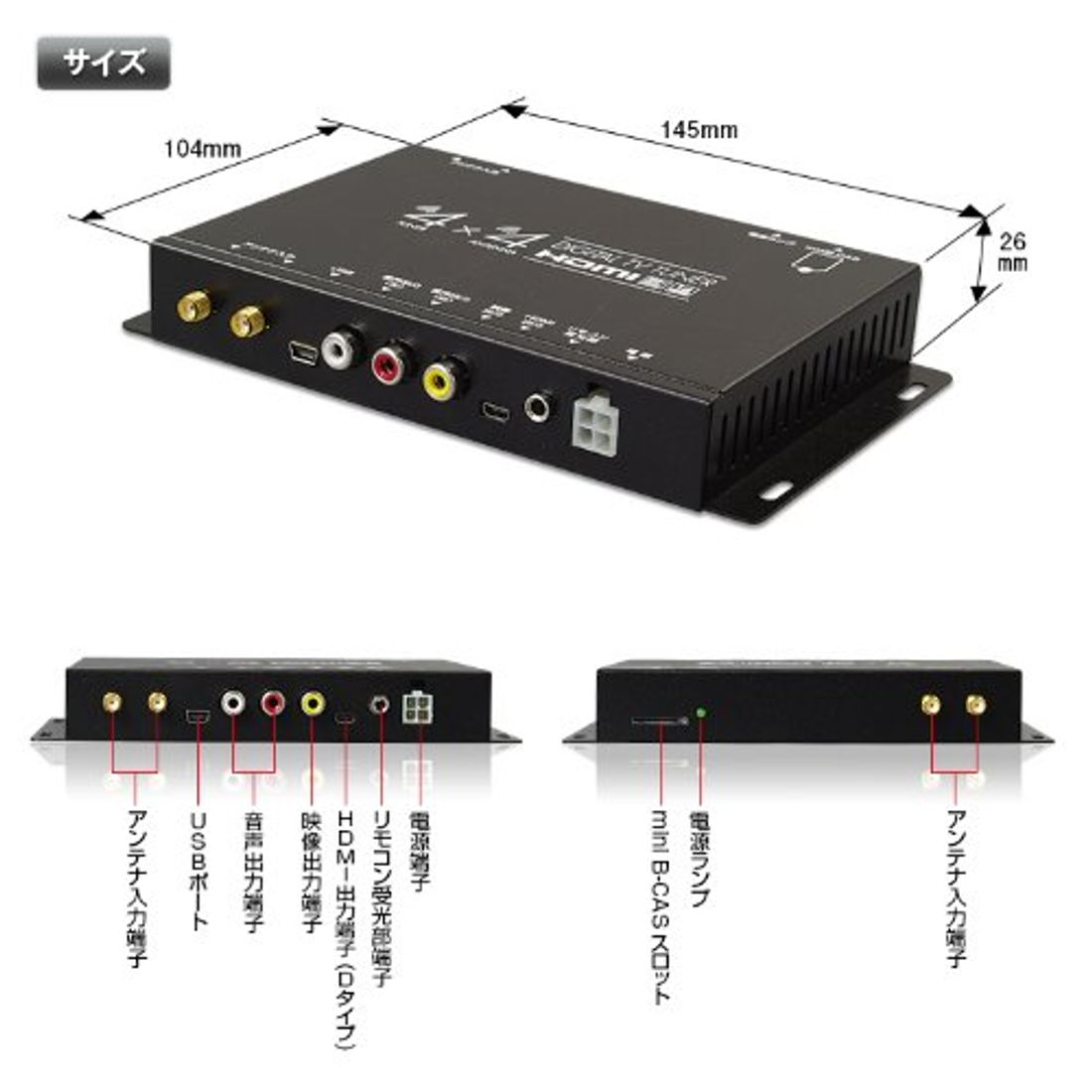 kmサービス 高精細度 地デジチューナー フルセグチューナー Hdmi 4x4 4チューナー 4アンテナ 高性能 Tv 車載 Av マルチ出力 12v 24v対応 Minib Casカード付き 宅配便送料無料 1年保証 K M